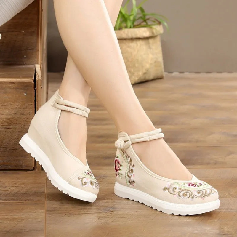 Escarpins à Talons Compensés avec Broderies Chinoises