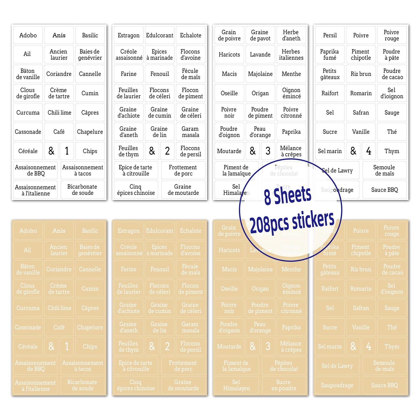 - Clarté et visibilité : Étiquettes transparentes pour une identification facile des épices.