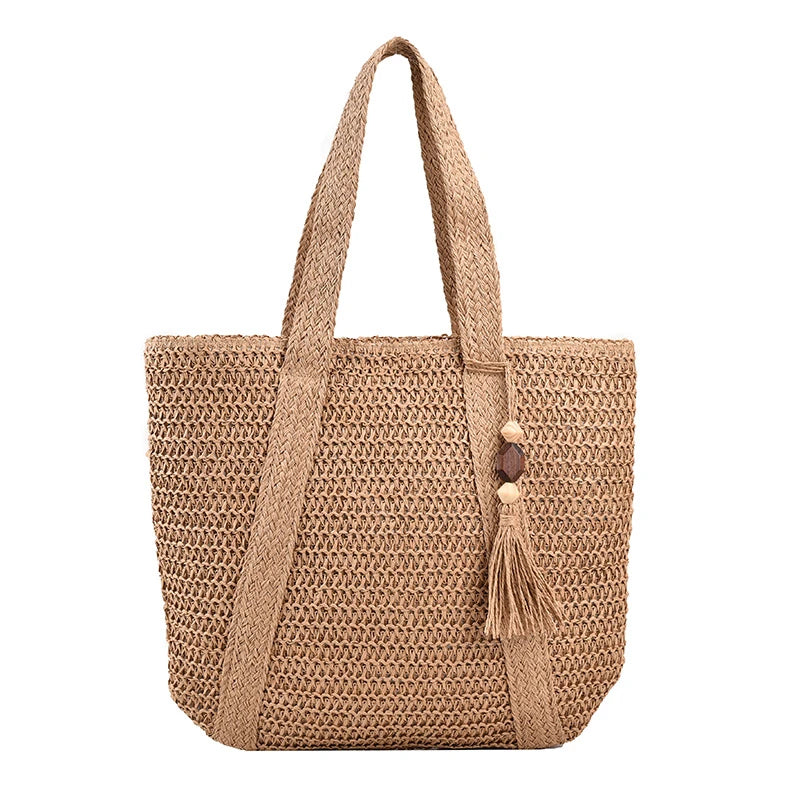 Grand Sac de Plage en Paille Tressée à Franges – Élégance Bohémienne