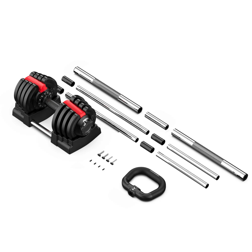 Cet équipement 3 en 1 se transforme en kettlebell et barre, élargissant ainsi votre gamme d’exercices. En un clin d’œil, passez d’une session de musculation à des mouvements de kettlebell dynamiques. Plus besoin d’avoir plusieurs équipements encombrants ; cet haltère remplace presque tout dans votre salle de sport à domicile !