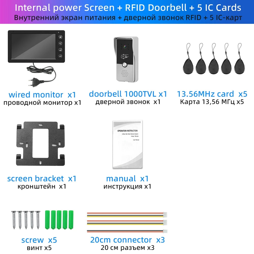 Interphone Vidéo Filaire avec Moniteur 7 Pouces pour Maison