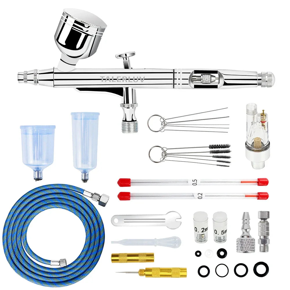 Transformez votre expérience artistique avec notre kit d’aérographie dual-action, conçu pour répondre à tous vos besoins créatifs, du plus simple au plus audacieux !
