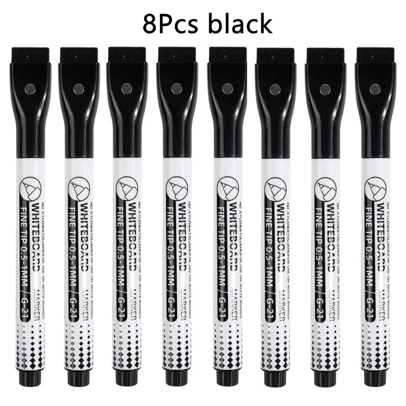 Marqueurs effaçables à sec magnétiques, 8 couleurs vives, pointe extra fine 0,5mm. Idéaux pour tableau blanc, bureau et école.