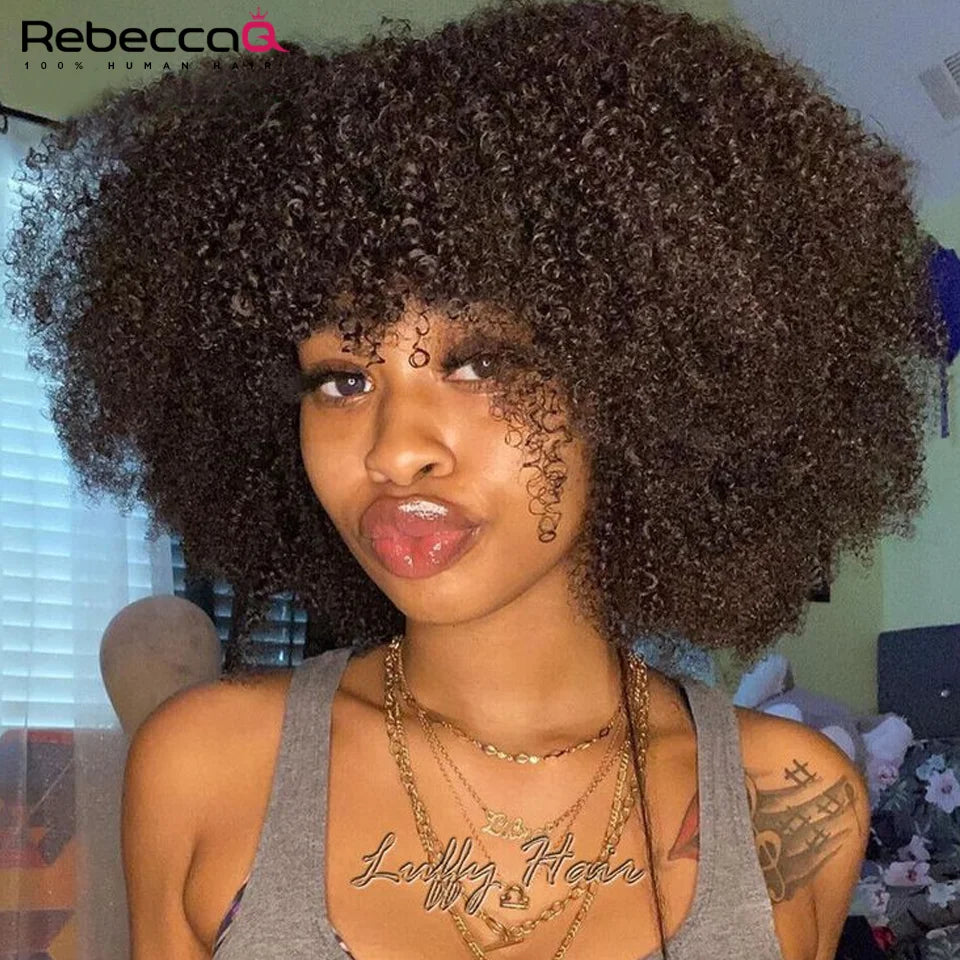 Notre Perruque Afro Bouclée avec Frange est confectionnée en cheveux humains brésiliens Remy, offrant un aspect authentique et une texture douce qui imite à la perfection les cheveux naturels. Cette perruque est conçue pour vous apporter confiance et élégance à chaque occasion, que ce soit au travail, lors d’un rendez-vous ou pour une sortie entre amis.