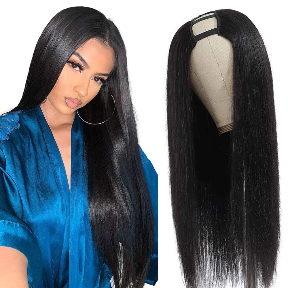 Ajoutez une touche de glamour à votre look quotidien avec notre perruque en cheveux humains lisses en forme de U. Idéale pour celles qui cherchent à allier style et praticité.