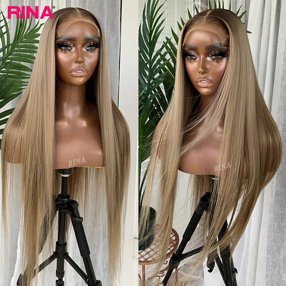 Perruque Lace Frontale Droite Effet Ombré Blonde avec Racines 1B