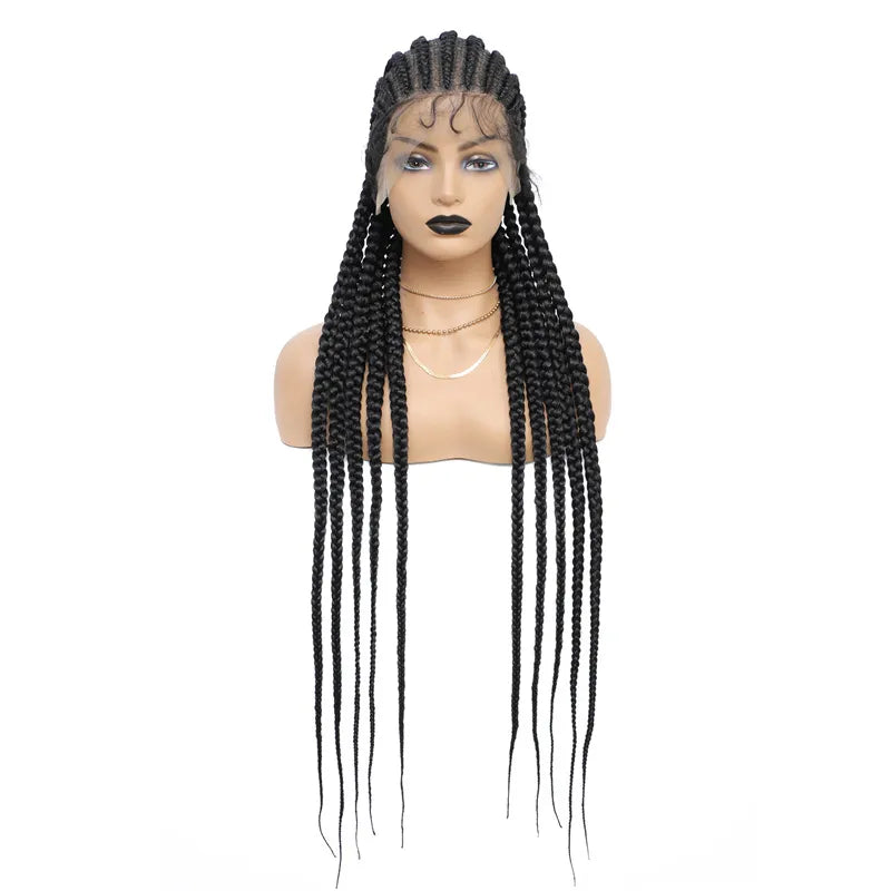 La perruque synthétique à dentelle frontale est conçue pour les femmes modernes qui souhaitent adopter un look audacieux. Ces tresses cornrow de 36 pouces, inspirées des styles traditionnels, vous permettent de vous démarquer tout en conservant une élégance intemporelle. Son design chic et contemporain fait de cette perruque un choix parfait pour toutes les occasions.