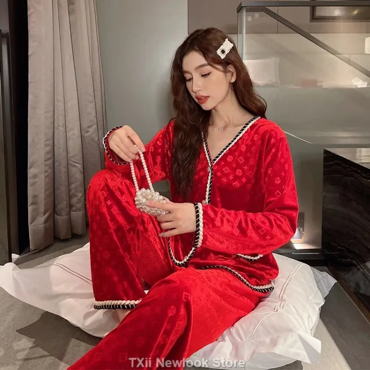 Cet ensemble rouge-chaud avec des manches longues est conçu pour celles qui aiment allier confort et style. Sa couleur audacieuse et son élégance intemporelle le rendent idéal pour les pauses café du matin ou les soirées entre amies. Montrez votre sens du style même à la maison !