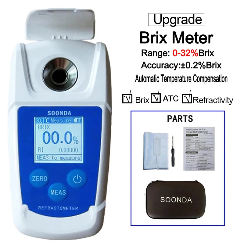 Vous cherchez à évaluer avec précision la teneur en sucre de vos boissons préférées ? Ce réfractomètre numérique est la solution idéale pour connaître le Brix dans vos jus de fruits et sodas.