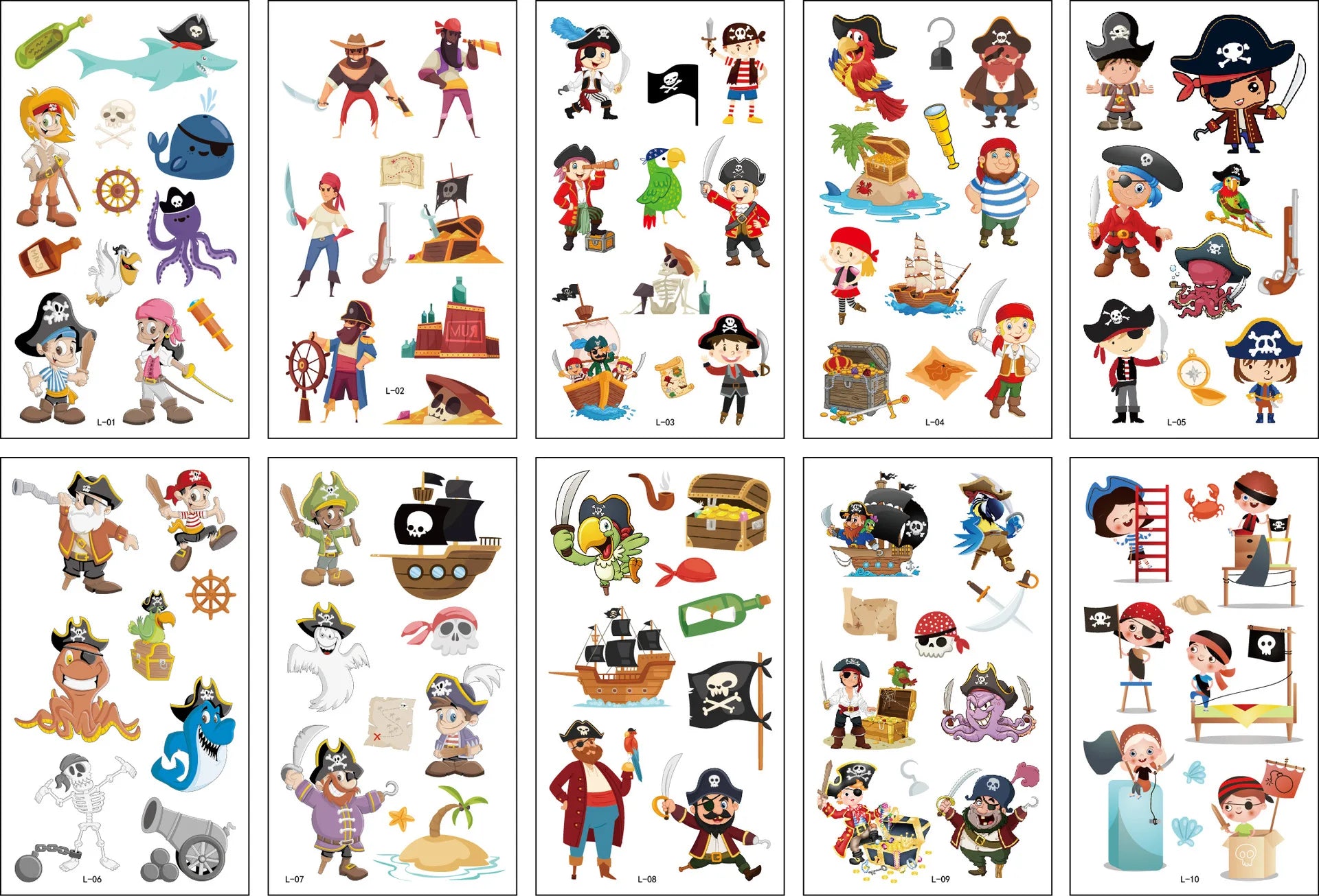 Offrez à vos enfants un moment de fun avec notre lot de tatouages temporaires pirates ! Colorés et captivants, ils sont parfaits pour toutes les occasions !