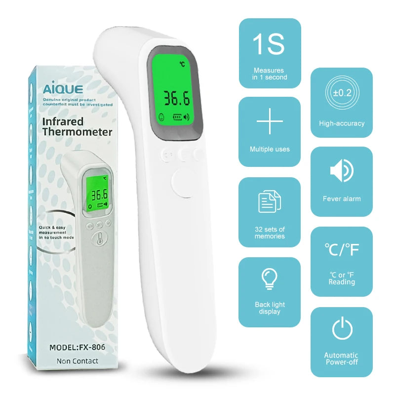 Thermomètre infrarouge sans contact AiQUE, rapide, précis, idéal pour toute la famille. Prenez soin de vous en toute simplicité.