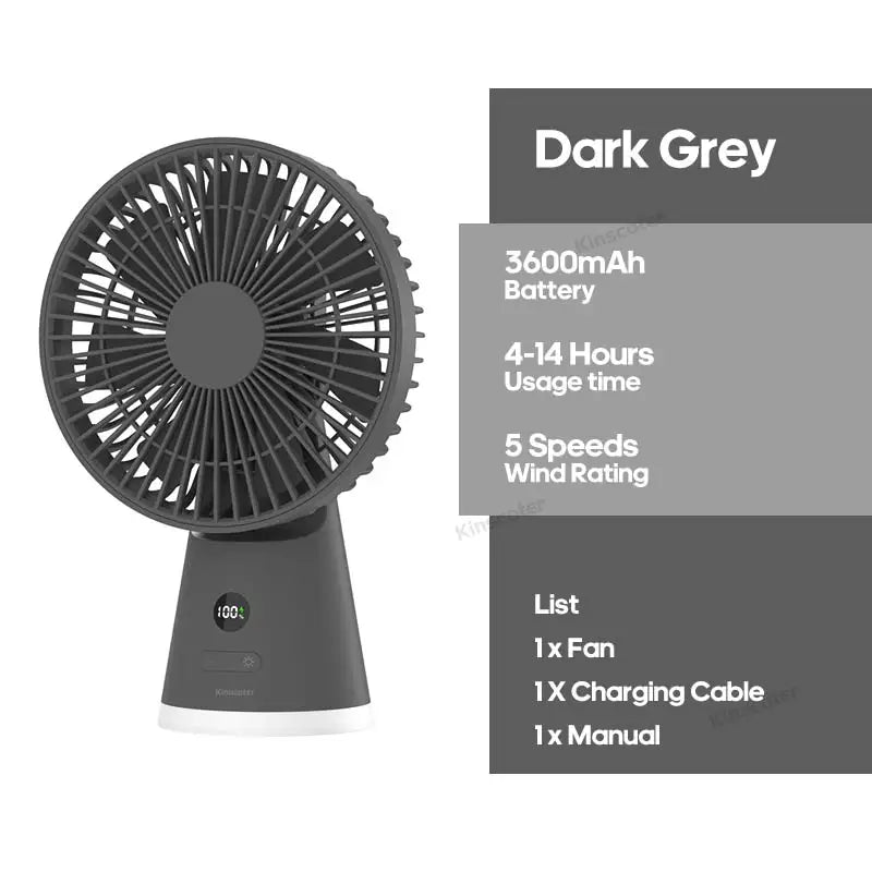 Ce ventilateur de bureau portable est conçu pour apporter une touche de fraîcheur dans tous vos espaces de travail ou de détente. Avec sa batterie rechargeable de 3600mAh, vous pourrez en profiter pendant des heures sans devoir le brancher. Que ce soit à votre bureau, dans votre salon, ou même lors d’un camping, il vous suivra partout !